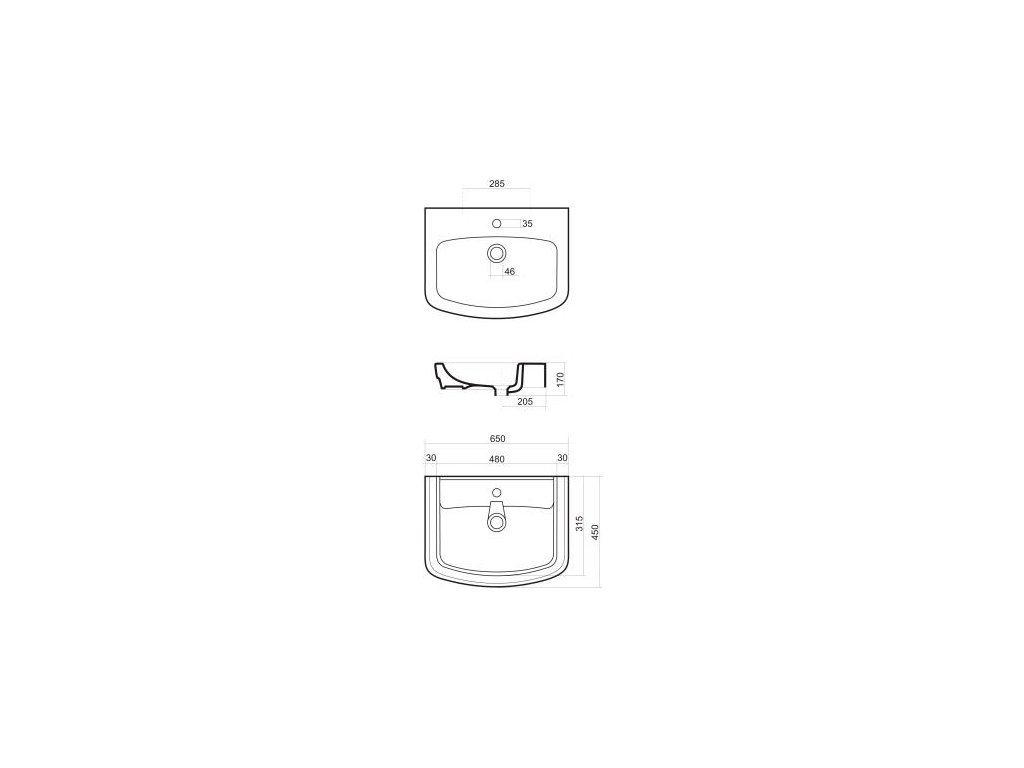 REA DENIS 62x35 pultové umývadlo Rozmery (mm): 615x350x110