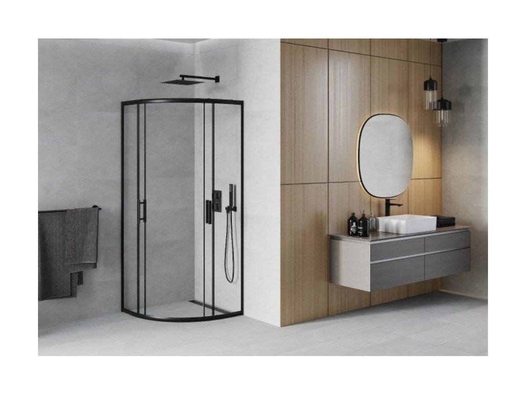 MEXEN RIO 80x80x190 BLACK polokrúhly sprchový kút