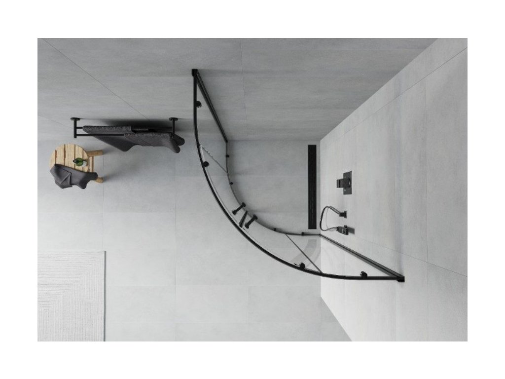 MEXEN RIO 90x90x190 BLACK polokrúhly sprchový kút