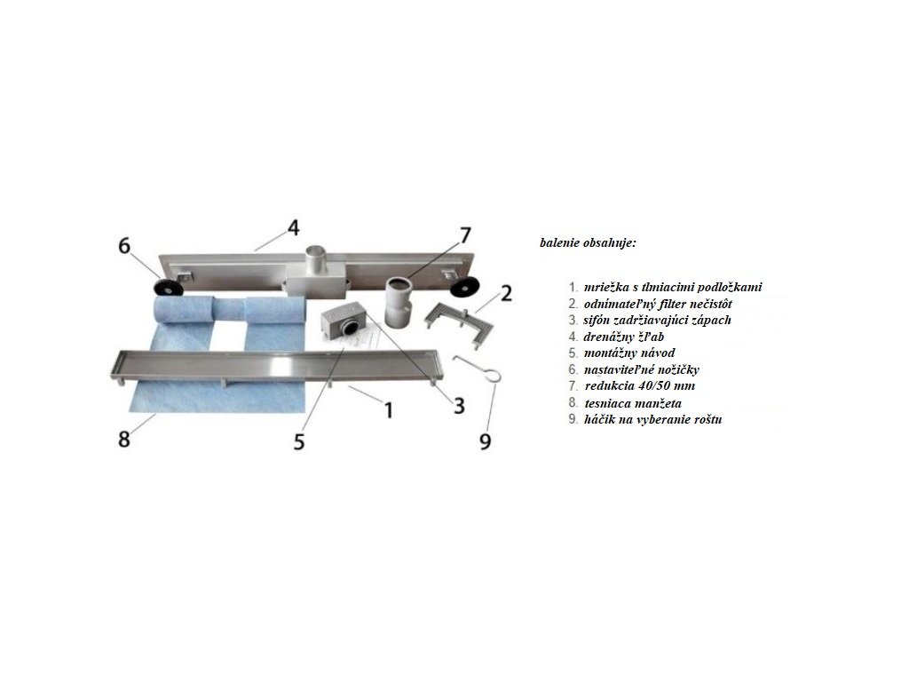 Sprchový žľab je vyrobený z kvalitnej nerezovej ocele Aisi 304 hrubej 1,2 mm. Mriežka 1,5 mm. Nerezový sifón má plastové sitko pre rýchle a jednoduché čistenie. Odtok vody...