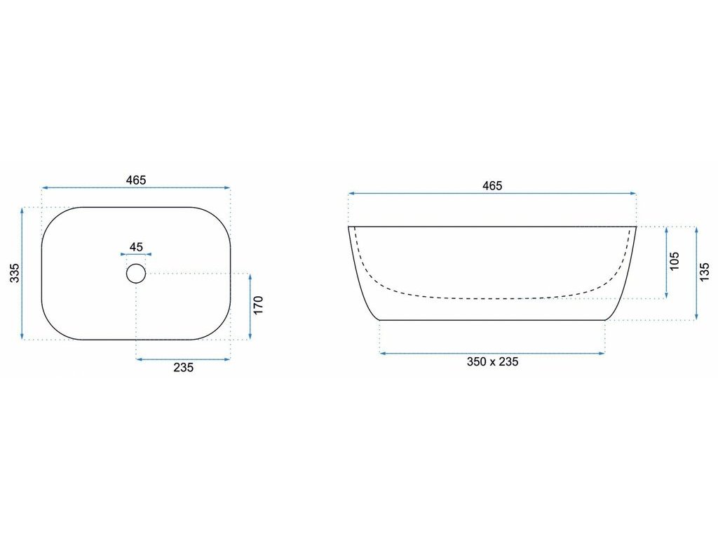 REA AMELIA 48x35 pultové umývadlo Rozmery (mm): 480x345x135