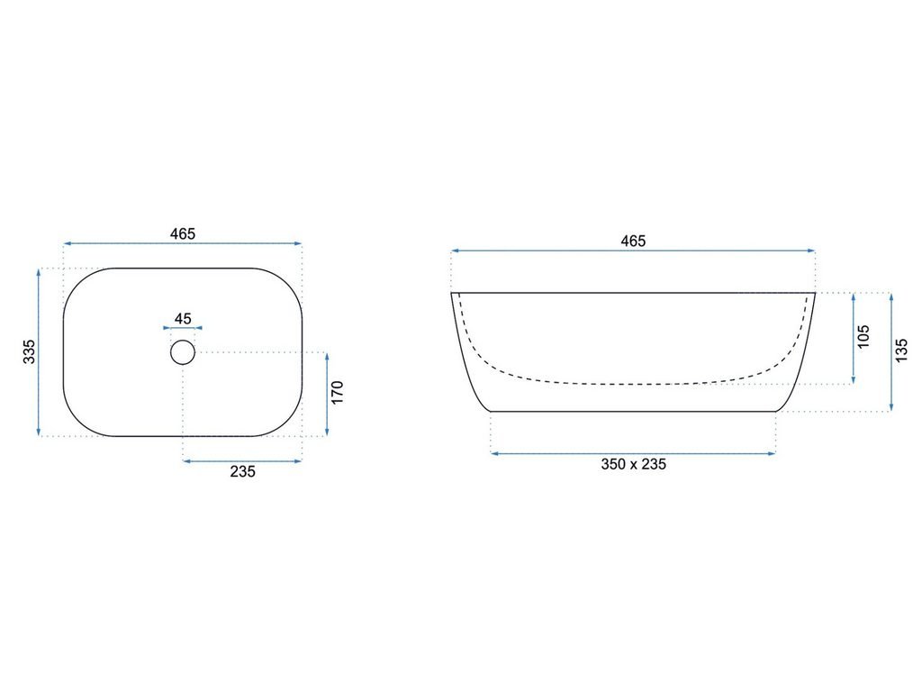 REA CLEO 81x41 pultové umývadlo Rozmery (mm): 810x410x135