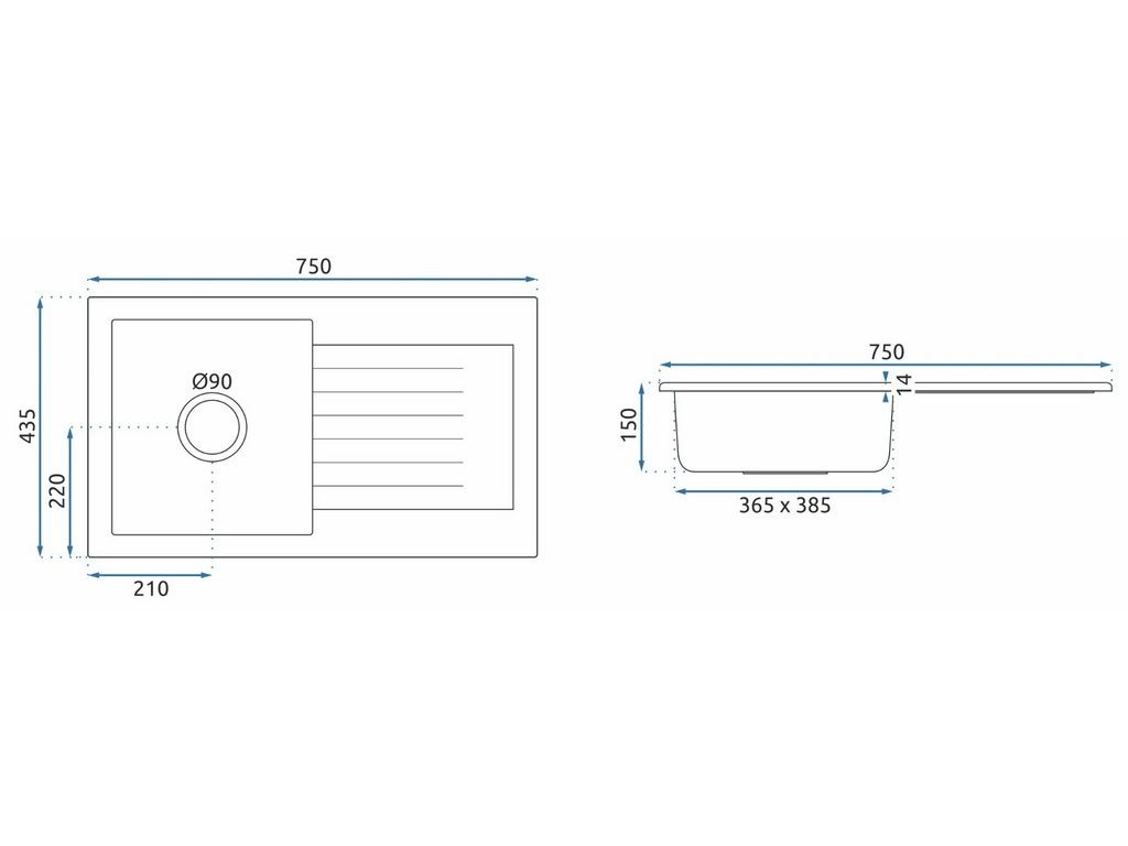 REA DAG kuchynský drez čierny metalický Rozmery (mm): 750x435x150