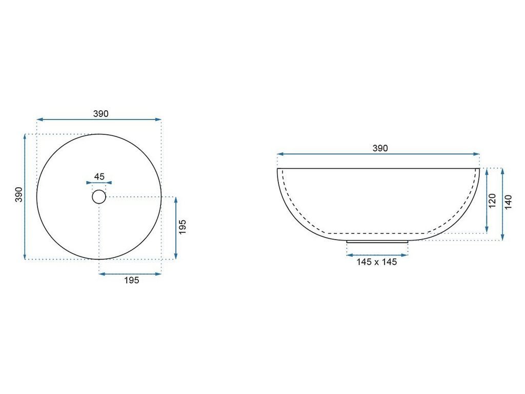 REA ELITA Ø 39 pultové umývadlo Rozmery (mm): Ø 390