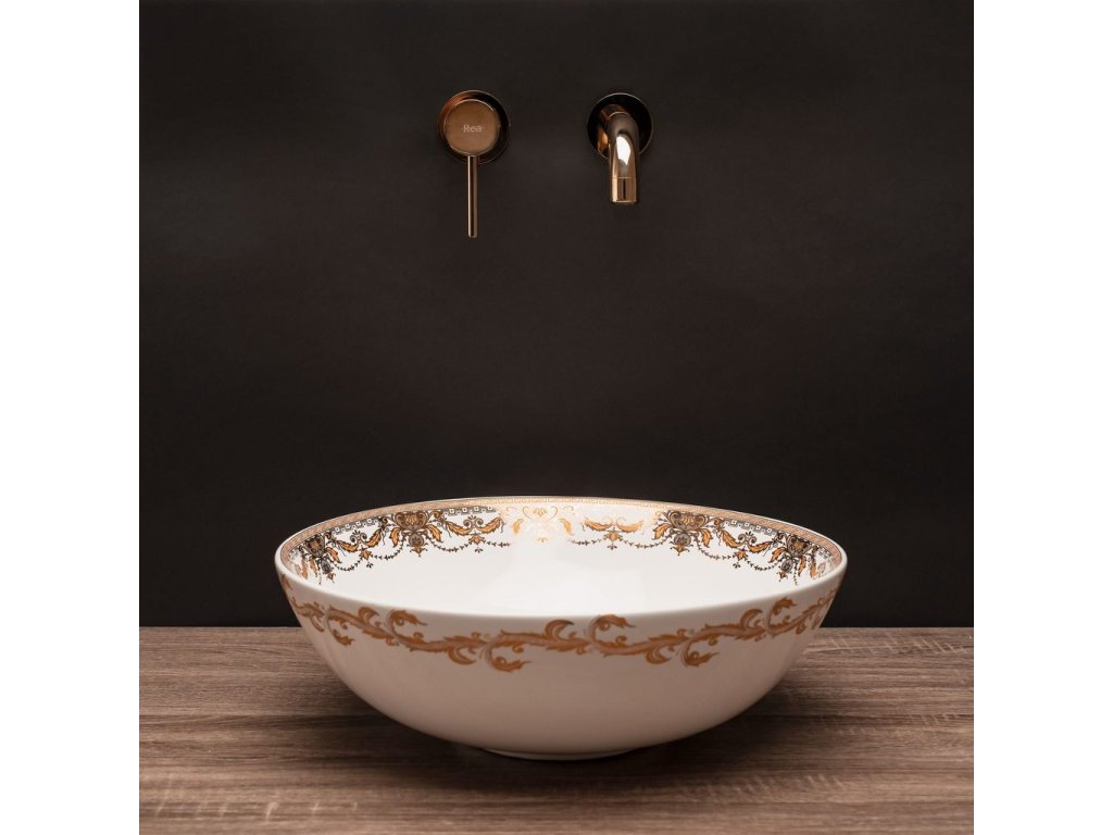 REA LUNGO ROSE GOLD umývadlová nástenná batéria podomietková