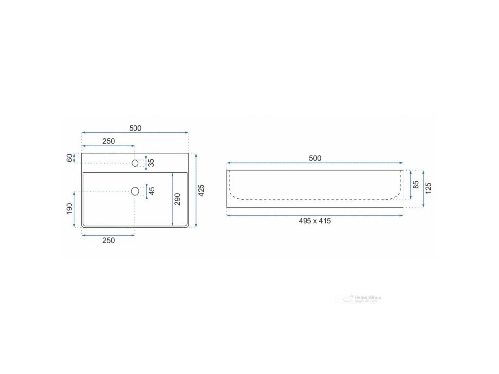 REA AMELIA 48x35 pultové umývadlo Rozmery (mm): 480x345x135