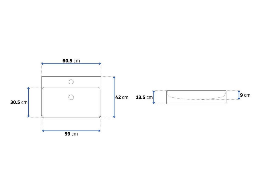 REA WENDY 59x38 pultové umývadlo Rozmery (mm): 590x380x195