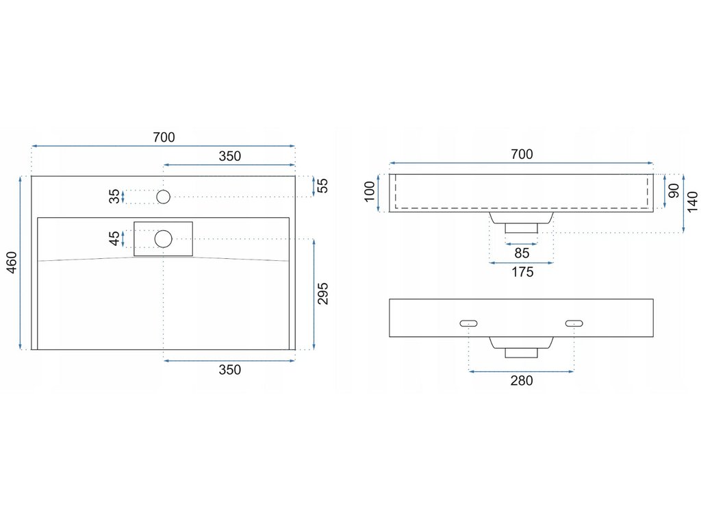 REA GOYA 70x46 BLACK pultové umývadlo Rozmery (mm): 700x460x100