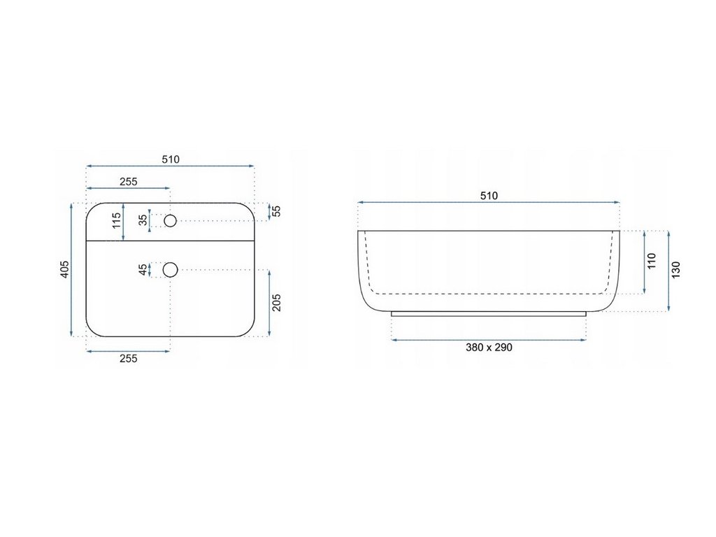 REA KELLY 49x38 pultové umývadlo Rozmery (mm): 490x380x135