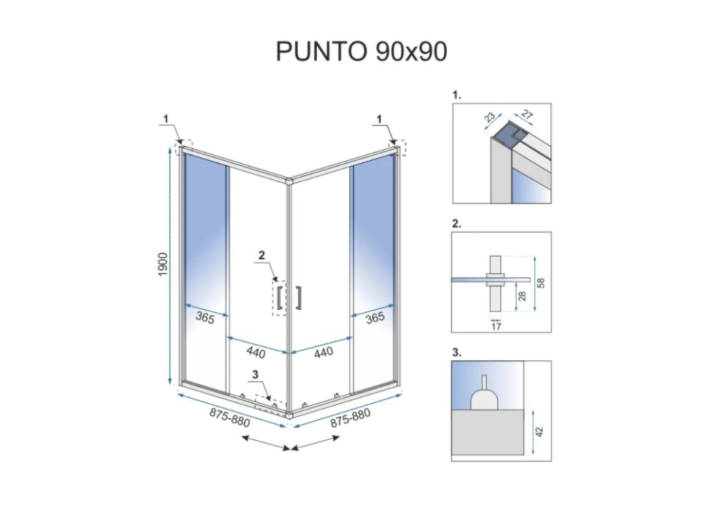 MEXEN RIO 90x90x190 polokrúhly sprchový kút transparent