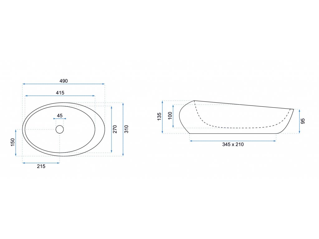 REA ROXY STONE A 49x31 pultové umývadlo Rozmery (mm): 490x310x195