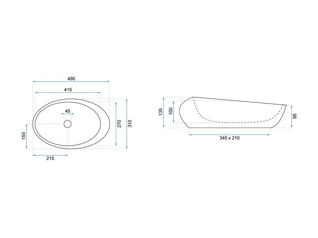 REA ROXY STONE B 49x31 pultové umývadlo Rozmery (mm): 490x310x195