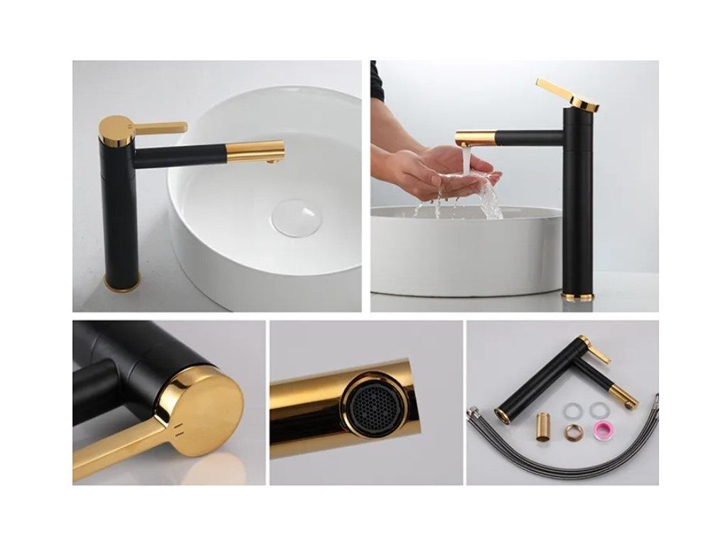 REA SMART HIGH BLACK/GOLD páková umývadlová/pultová stojaca batéria
