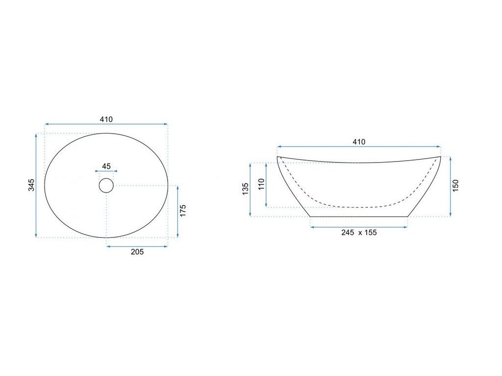 REA CLEO 61x41 pultové umývadlo Rozmery (mm): 605x410x140
