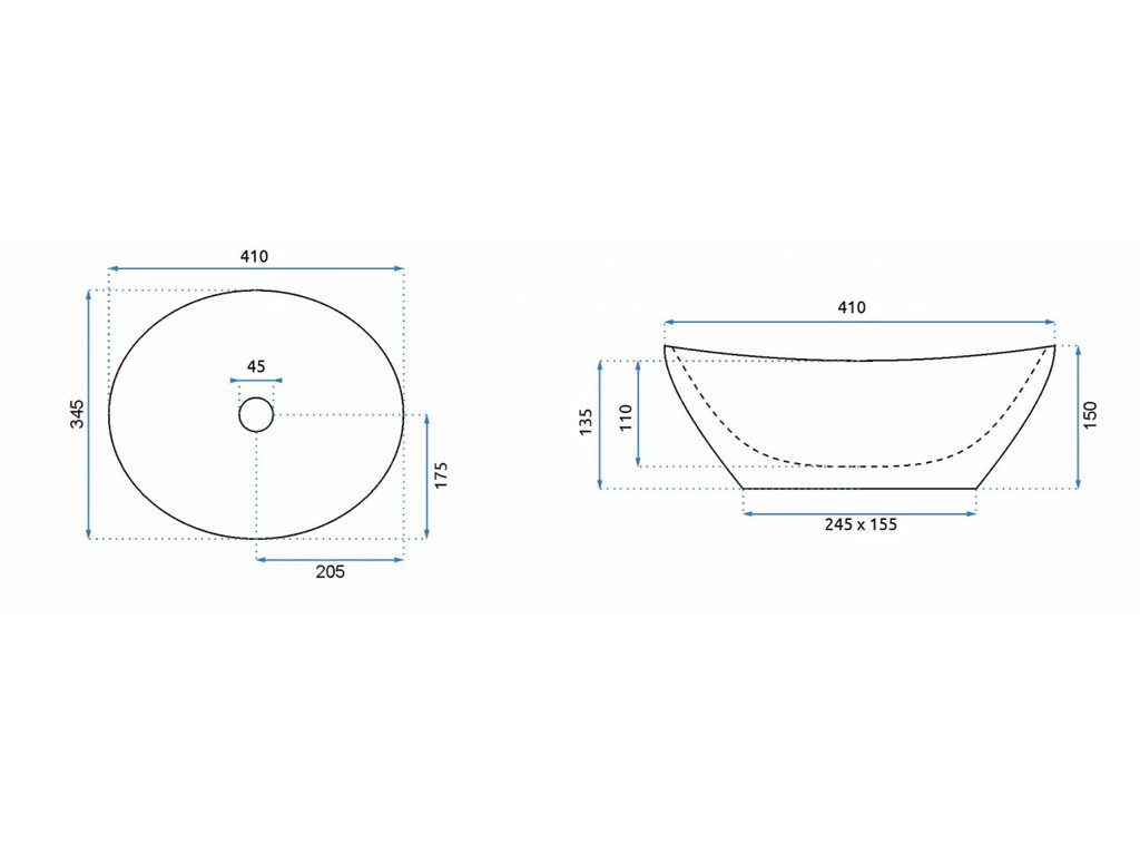 REA DAFNE 72x47 zápustné umývadlo Rozmery (mm): 715x465x170