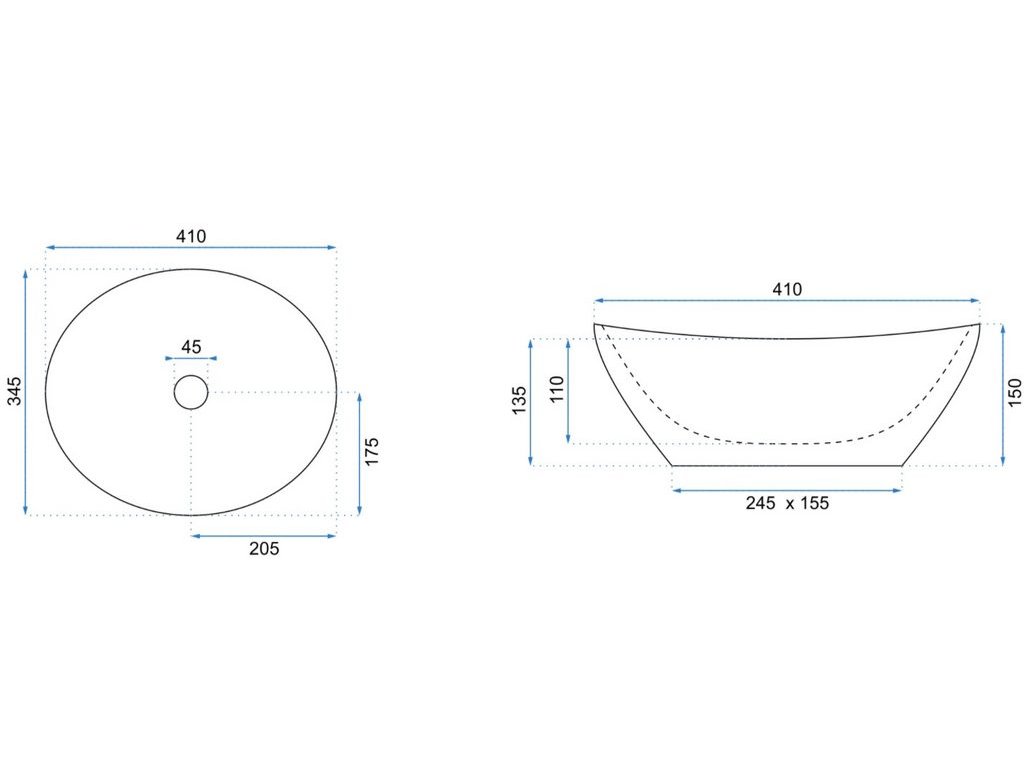REA MELANIA 60x41 BLACK pultové umývadlo Rozmery (mm): 600x405x145