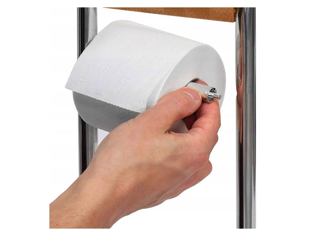 REA stojan na toaletný papier s WC kefou CHRÓM/BAMBUS
