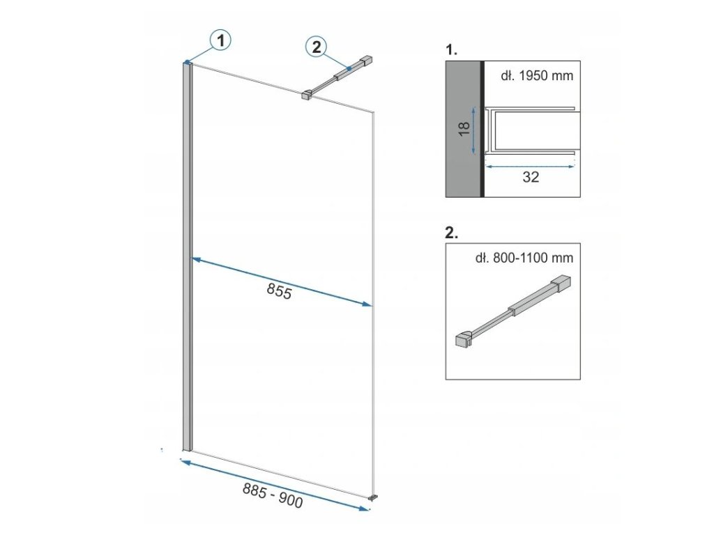 sprchová stena REA AERO 90 x 195 cm WALK-IN