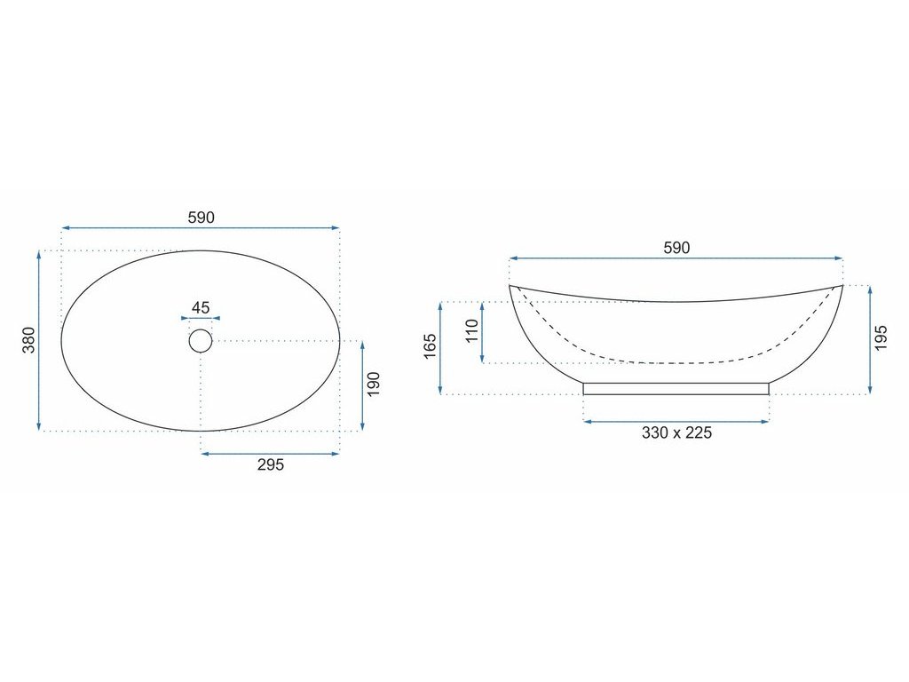 REA WENDY 59x38 pultové umývadlo Rozmery (mm): 590x380x195